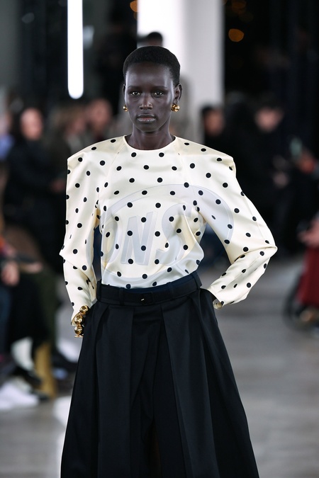 Patou Model On Catwalk, Paris Haute Couture Fashion Week 2024 HC For Spring Summer, Defile, Fashion Show Runway Collection, Modelwear, Modeschau Laufsteg France, PARHCS24, Credit:www.fashionpps.com / Avalon