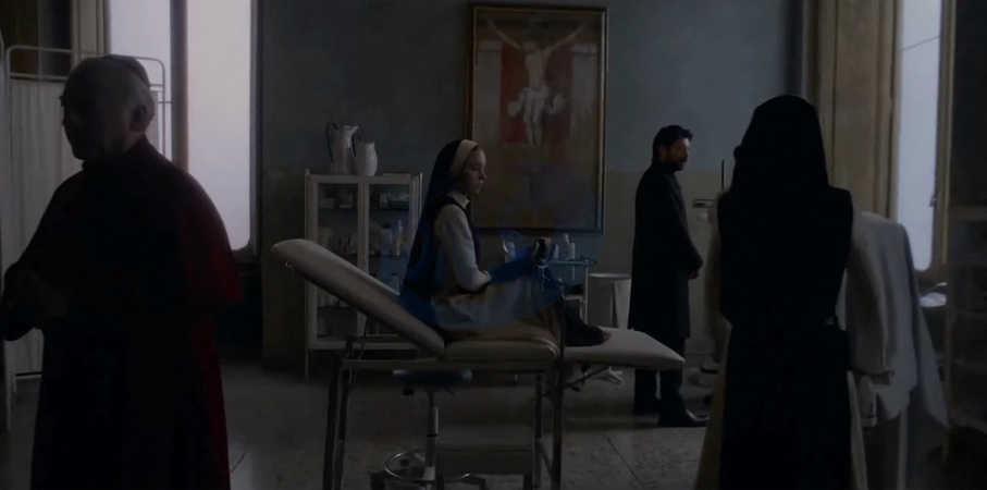 Pictures MUST credit: Neon Euphoria and White Lotus TV star Sydney Sweeney is set to chill fans in a new horror movie where she plays a NUN! The film, titled Immaculate, sees her character Cecilia sent from the USA to a remote convent in Italy. But the trailer shows this is no ordinary convent as it opens during her in confessions sudden being attacked from behind by a pair of hands. There is even more distress later when she becomes ill and is given medical tests which show she is pregnant and it is hailed as an immaculate conception. But the question is what is it she has growing inside her ? The convent itself has mysterious red masked figures who occasionally appear, unspeaking. And one of the scenes shows Sweeney ,26, in blood-soaked white gown being chased across a field by a man. Another scene shows one of the nuns leaping to her death from a balcony. The trailer also sees Sweeney's character relaxing in a large communal bath when suddenly she is grabbed and dragged under the water. Picture supplied by JLPPA_