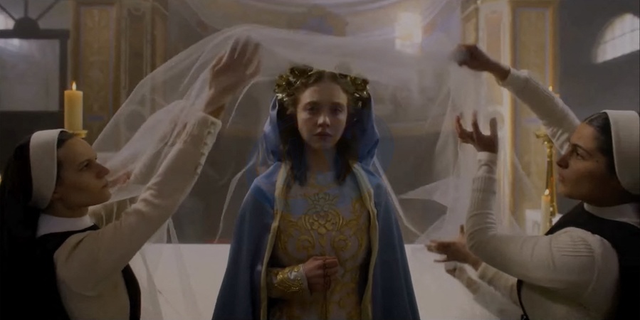 Pictures MUST credit: Neon Euphoria and White Lotus TV star Sydney Sweeney is set to chill fans in a new horror movie where she plays a NUN! The film, titled Immaculate, sees her character Cecilia sent from the USA to a remote convent in Italy. But the trailer shows this is no ordinary convent as it opens during her in confessions sudden being attacked from behind by a pair of hands. There is even more distress later when she becomes ill and is given medical tests which show she is pregnant and it is hailed as an immaculate conception. But the question is what is it she has growing inside her ? The convent itself has mysterious red masked figures who occasionally appear, unspeaking. And one of the scenes shows Sweeney ,26, in blood-soaked white gown being chased across a field by a man. Another scene shows one of the nuns leaping to her death from a balcony. The trailer also sees Sweeney's character relaxing in a large communal bath when suddenly she is grabbed and dragged under the water. Picture supplied by JLPPA_