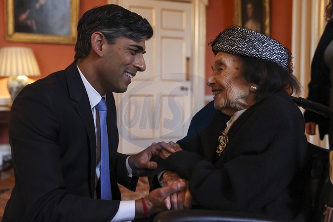 24/01/2024. London, United Kingdom. Prime Minister Rishi Sunak meets Holocaust survivor Lily Ebert in 10 Downing Street., Credit:Simon Dawson / Avalon