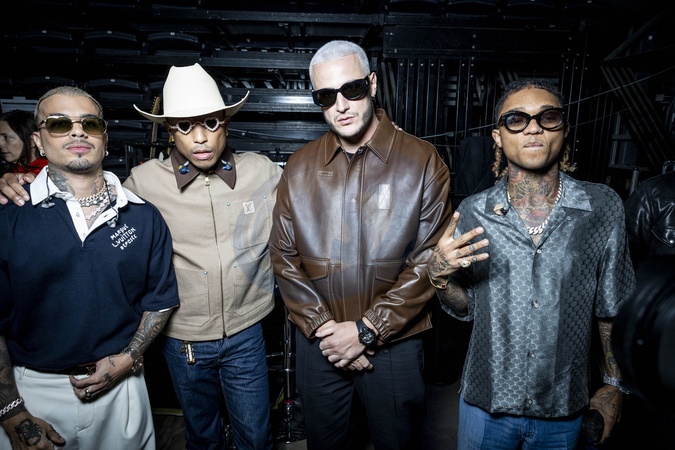 Exclusif - Rauw Alejandro, Swae Lee, Pharrell Williams et Dj Snake - Backstage - Concert événement "Le gala des pièces jaunes" à l'Accor Arena Paris le 26 janvier 2024. Une soirée de gala exceptionnelle en faveur desPièces Jaunes !De nombreux artistes se succèderont pour chanter pour les enfants et adolescents hospitalisés. © Cyril Moreau / Guillaume Gaffiot / Bestimage Exclusive - No web en Suisse / Belgique Concert event "Le gala des pièces jaunes" at the Accor Arena Paris on 26 January 2024. An exceptional gala evening in aid of the Pièces Jaunes! A host of artists will perform for children and teenagers in hospital.