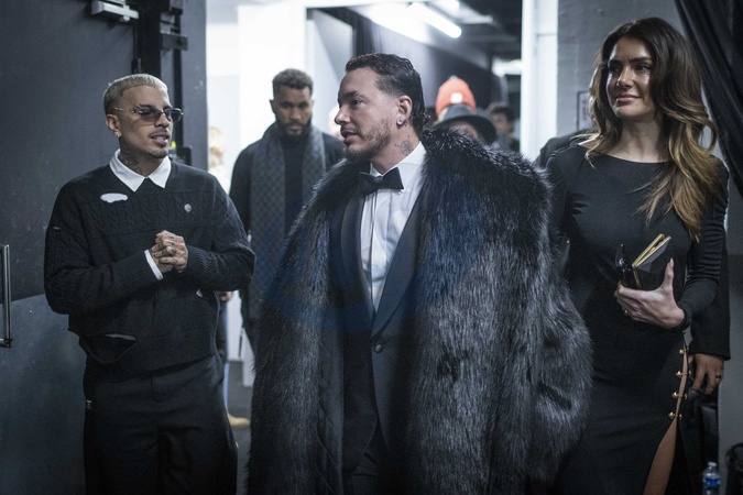 Exclusif - J Balvin et Rauw Alejandro - Backstage - Concert événement "Le gala des pièces jaunes" à l'Accor Arena Paris le 26 janvier 2024. Une soirée de gala exceptionnelle en faveur desPièces Jaunes !De nombreux artistes se succèderont pour chanter pour les enfants et adolescents hospitalisés. © Cyril Moreau / Guillaume Gaffiot / Bestimage Exclusive - No web en Suisse / Belgique Concert event "Le gala des pièces jaunes" at the Accor Arena Paris on 26 January 2024. An exceptional gala evening in aid of the Pièces Jaunes! A host of artists will perform for children and teenagers in hospital.