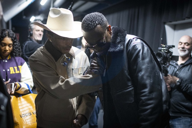 Exclusif - Pharrell Williams et Gims - Backstage - Concert événement "Le gala des pièces jaunes" à l'Accor Arena Paris le 26 janvier 2024. Une soirée de gala exceptionnelle en faveur desPièces Jaunes !De nombreux artistes se succèderont pour chanter pour les enfants et adolescents hospitalisés. © Cyril Moreau / Guillaume Gaffiot / Bestimage Exclusive - No web en Suisse / Belgique Concert event "Le gala des pièces jaunes" at the Accor Arena Paris on 26 January 2024. An exceptional gala evening in aid of the Pièces Jaunes! A host of artists will perform for children and teenagers in hospital.