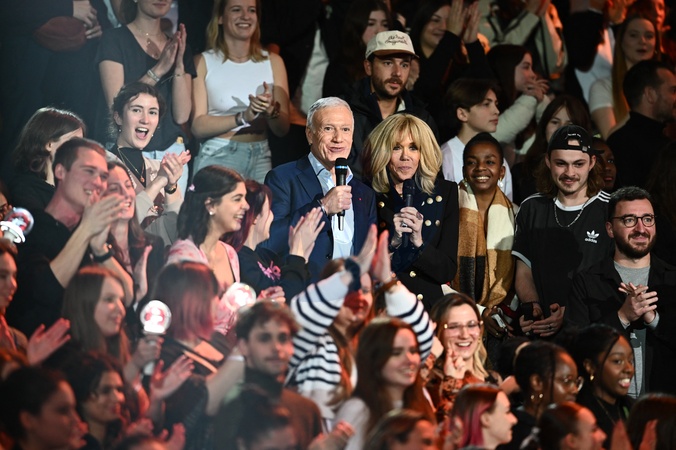 Exclusif - Didier Deschamps et Brigitte Macron - Scène - Concert événement "Le gala des pièces jaunes" à l'Accor Arena Paris le 26 janvier 2024. Une soirée de gala exceptionnelle en faveur desPièces Jaunes !De nombreux artistes se succèderont pour chanter pour les enfants et adolescents hospitalisés. © Guillaume Gaffiot / Cyril Moreau / Bestimage Exclusive - No web en Suisse / Belgique Concert event "Le gala des pièces jaunes" at the Accor Arena Paris on 26 January 2024. An exceptional gala evening in aid of the Pièces Jaunes! A host of artists will perform for children and teenagers in hospital.