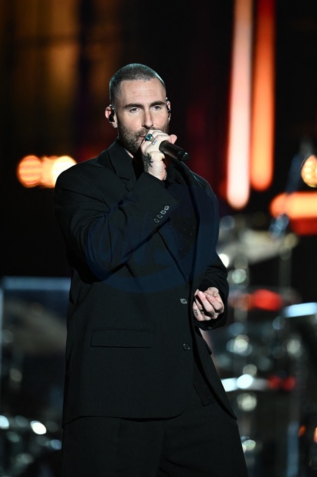 Exclusif - Marron 5 - Scène - Concert événement "Le gala des pièces jaunes" à l'Accor Arena Paris le 26 janvier 2024. Une soirée de gala exceptionnelle en faveur desPièces Jaunes !De nombreux artistes se succèderont pour chanter pour les enfants et adolescents hospitalisés. © Guillaume Gaffiot / Cyril Moreau / Bestimage Exclusive - No web en Suisse / Belgique Concert event "Le gala des pièces jaunes" at the Accor Arena Paris on 26 January 2024. An exceptional gala evening in aid of the Pièces Jaunes! A host of artists will perform for children and teenagers in hospital.