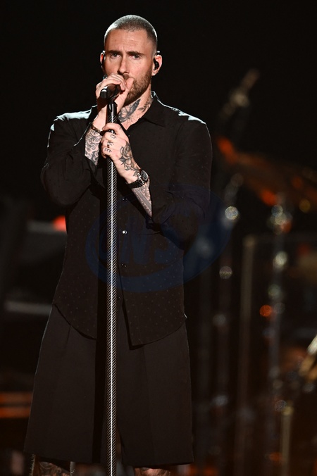 Exclusif - Maroon 5 - Scène - Concert événement "Le gala des pièces jaunes" à l'Accor Arena Paris le 26 janvier 2024. Une soirée de gala exceptionnelle en faveur desPièces Jaunes !De nombreux artistes se succèderont pour chanter pour les enfants et adolescents hospitalisés. © Guillaume Gaffiot / Cyril Moreau / Bestimage Exclusive - No web en Suisse / Belgique Concert event "Le gala des pièces jaunes" at the Accor Arena Paris on 26 January 2024. An exceptional gala evening in aid of the Pièces Jaunes! A host of artists will perform for children and teenagers in hospital.