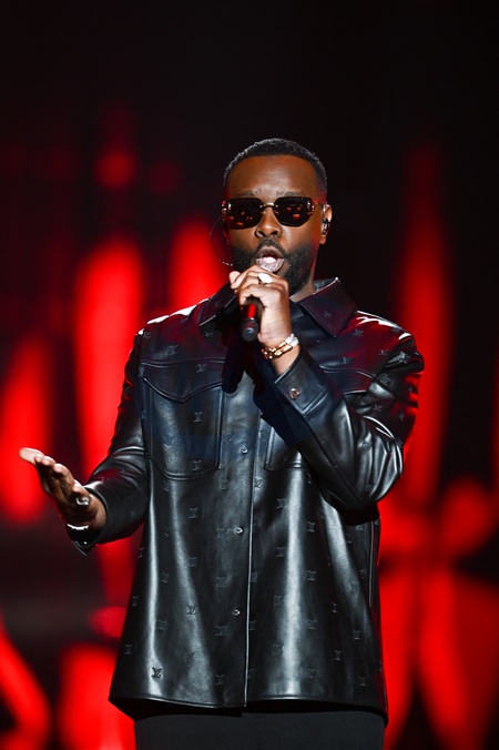 Exclusif - Gims - Scène - Concert événement "Le gala des pièces jaunes" à l'Accor Arena Paris le 26 janvier 2024. Une soirée de gala exceptionnelle en faveur desPièces Jaunes !De nombreux artistes se succèderont pour chanter pour les enfants et adolescents hospitalisés. © Guillaume Gaffiot / Cyril Moreau / Bestimage Exclusive - No web en Suisse / Belgique Concert event "Le gala des pièces jaunes" at the Accor Arena Paris on 26 January 2024. An exceptional gala evening in aid of the Pièces Jaunes! A host of artists will perform for children and teenagers in hospital.