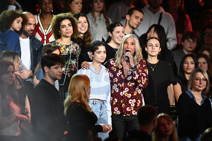 Exclusif - Zazie avec maelane et sa famille - Scène - Concert événement "Le gala des pièces jaunes" à l'Accor Arena Paris le 26 janvier 2024. Une soirée de gala exceptionnelle en faveur desPièces Jaunes !De nombreux artistes se succèderont pour chanter pour les enfants et adolescents hospitalisés. © Guillaume Gaffiot / Cyril Moreau / Bestimage Exclusive - No web en Suisse / Belgique Concert event "Le gala des pièces jaunes" at the Accor Arena Paris on 26 January 2024. An exceptional gala evening in aid of the Pièces Jaunes! A host of artists will perform for children and teenagers in hospital.
