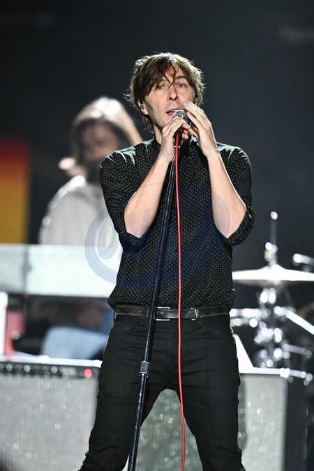 Exclusif - Le groupe Phoenix - Thomas Mars - Scène - Concert événement "Le gala des pièces jaunes" à l'Accor Arena Paris le 26 janvier 2024. Une soirée de gala exceptionnelle en faveur desPièces Jaunes !De nombreux artistes se succèderont pour chanter pour les enfants et adolescents hospitalisés. © Guillaume Gaffiot / Cyril Moreau / Bestimage Exclusive - No web en Suisse / Belgique Concert event "Le gala des pièces jaunes" at the Accor Arena Paris on 26 January 2024. An exceptional gala evening in aid of the Pièces Jaunes! A host of artists will perform for children and teenagers in hospital.
