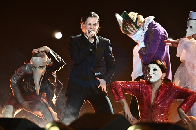 Exclusif - Christine and the queen - Scène - Concert événement "Le gala des pièces jaunes" à l'Accor Arena Paris le 26 janvier 2024. Une soirée de gala exceptionnelle en faveur desPièces Jaunes !De nombreux artistes se succèderont pour chanter pour les enfants et adolescents hospitalisés. © Guillaume Gaffiot / Cyril Moreau / Bestimage Exclusive - No web en Suisse / Belgique Concert event "Le gala des pièces jaunes" at the Accor Arena Paris on 26 January 2024. An exceptional gala evening in aid of the Pièces Jaunes! A host of artists will perform for children and teenagers in hospital.