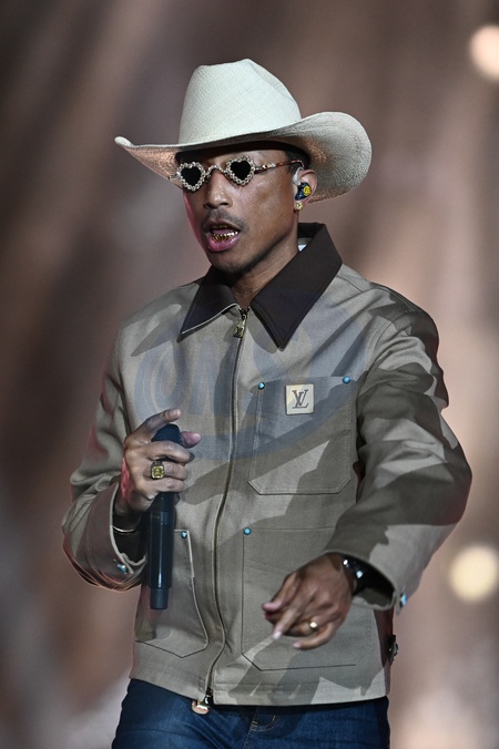 Exclusif - Pharrell Williams - Scène - Concert événement "Le gala des pièces jaunes" à l'Accor Arena Paris le 26 janvier 2024. Une soirée de gala exceptionnelle en faveur desPièces Jaunes !De nombreux artistes se succèderont pour chanter pour les enfants et adolescents hospitalisés. © Guillaume Gaffiot / Cyril Moreau / Bestimage Exclusive - No web en Suisse / Belgique Concert event "Le gala des pièces jaunes" at the Accor Arena Paris on 26 January 2024. An exceptional gala evening in aid of the Pièces Jaunes! A host of artists will perform for children and teenagers in hospital.