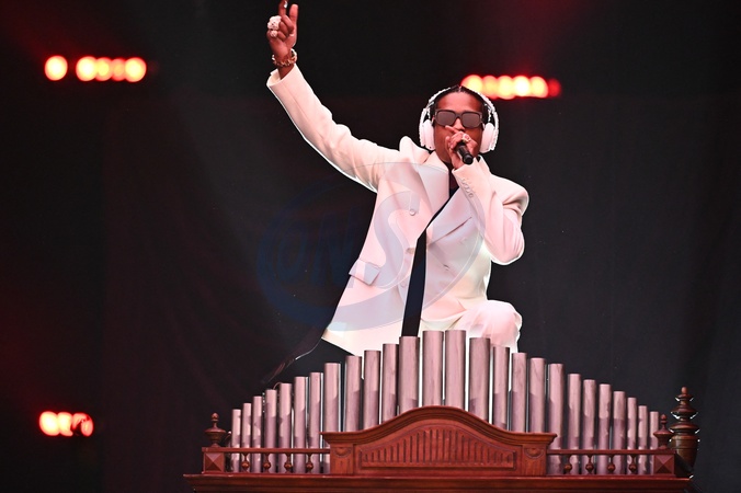 Exclusif - Asap Rocky - Scène - Concert événement "Le gala des pièces jaunes" à l'Accor Arena Paris le 26 janvier 2024. Une soirée de gala exceptionnelle en faveur desPièces Jaunes !De nombreux artistes se succèderont pour chanter pour les enfants et adolescents hospitalisés. © Guillaume Gaffiot / Cyril Moreau / Bestimage Exclusive - No web en Suisse / Belgique Concert event "Le gala des pièces jaunes" at the Accor Arena Paris on 26 January 2024. An exceptional gala evening in aid of the Pièces Jaunes! A host of artists will perform for children and teenagers in hospital.
