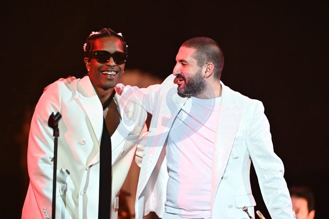 Exclusif - Asap Rocky et Ibrahim Maalouf - Scène - Concert événement "Le gala des pièces jaunes" à l'Accor Arena Paris le 26 janvier 2024. Une soirée de gala exceptionnelle en faveur desPièces Jaunes !De nombreux artistes se succèderont pour chanter pour les enfants et adolescents hospitalisés. © Guillaume Gaffiot / Cyril Moreau / Bestimage Exclusive - No web en Suisse / Belgique Concert event "Le gala des pièces jaunes" at the Accor Arena Paris on 26 January 2024. An exceptional gala evening in aid of the Pièces Jaunes! A host of artists will perform for children and teenagers in hospital.