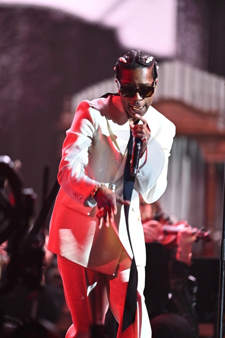 Exclusif - Asap Rocky - Scène - Concert événement "Le gala des pièces jaunes" à l'Accor Arena Paris le 26 janvier 2024. Une soirée de gala exceptionnelle en faveur desPièces Jaunes !De nombreux artistes se succèderont pour chanter pour les enfants et adolescents hospitalisés. © Guillaume Gaffiot / Cyril Moreau / Bestimage Exclusive - No web en Suisse / Belgique Concert event "Le gala des pièces jaunes" at the Accor Arena Paris on 26 January 2024. An exceptional gala evening in aid of the Pièces Jaunes! A host of artists will perform for children and teenagers in hospital.