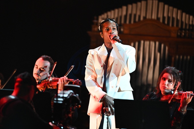 Exclusif - Asap Rocky - Scène - Concert événement "Le gala des pièces jaunes" à l'Accor Arena Paris le 26 janvier 2024. Une soirée de gala exceptionnelle en faveur desPièces Jaunes !De nombreux artistes se succèderont pour chanter pour les enfants et adolescents hospitalisés. © Guillaume Gaffiot / Cyril Moreau / Bestimage Exclusive - No web en Suisse / Belgique Concert event "Le gala des pièces jaunes" at the Accor Arena Paris on 26 January 2024. An exceptional gala evening in aid of the Pièces Jaunes! A host of artists will perform for children and teenagers in hospital.