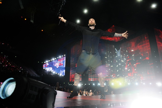 Exclusif - Maroon 5 - Scène - Concert événement "Le gala des pièces jaunes" à l'Accor Arena Paris le 26 janvier 2024. Une soirée de gala exceptionnelle en faveur desPièces Jaunes !De nombreux artistes se succèderont pour chanter pour les enfants et adolescents hospitalisés. © Guillaume Gaffiot / Cyril Moreau / Bestimage Exclusive - No web en Suisse / Belgique Concert event "Le gala des pièces jaunes" at the Accor Arena Paris on 26 January 2024. An exceptional gala evening in aid of the Pièces Jaunes! A host of artists will perform for children and teenagers in hospital.