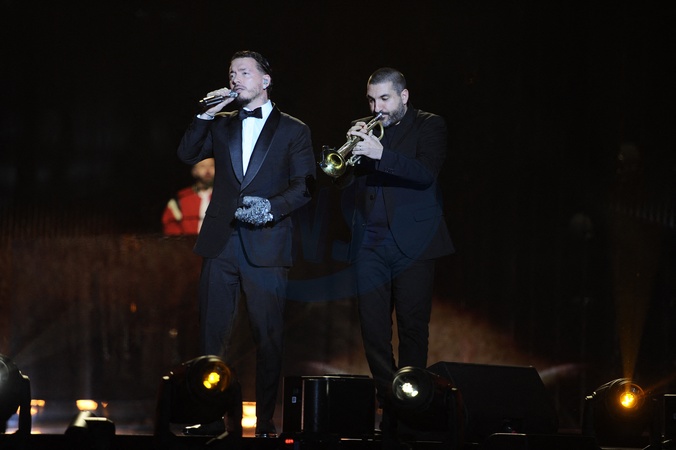 Exclusif - Ibrahim Maalouf et J Balvin - Scène - Concert événement "Le gala des pièces jaunes" à l'Accor Arena Paris le 26 janvier 2024. Une soirée de gala exceptionnelle en faveur desPièces Jaunes !De nombreux artistes se succèderont pour chanter pour les enfants et adolescents hospitalisés. © Guillaume Gaffiot / Cyril Moreau / Bestimage Exclusive - No web en Suisse / Belgique Concert event "Le gala des pièces jaunes" at the Accor Arena Paris on 26 January 2024. An exceptional gala evening in aid of the Pièces Jaunes! A host of artists will perform for children and teenagers in hospital.