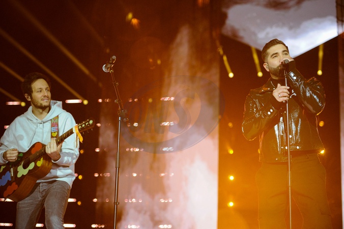 Exclusif - Vianney et Kendji Girac - Scène - Concert événement "Le gala des pièces jaunes" à l'Accor Arena Paris le 26 janvier 2024. Une soirée de gala exceptionnelle en faveur desPièces Jaunes !De nombreux artistes se succèderont pour chanter pour les enfants et adolescents hospitalisés. © Guillaume Gaffiot / Cyril Moreau / Bestimage Exclusive - No web en Suisse / Belgique Concert event "Le gala des pièces jaunes" at the Accor Arena Paris on 26 January 2024. An exceptional gala evening in aid of the Pièces Jaunes! A host of artists will perform for children and teenagers in hospital.