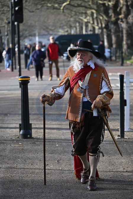 English Civil War reenactors march along The Mall to Horseguards in London, UK, on 28th January, 2024