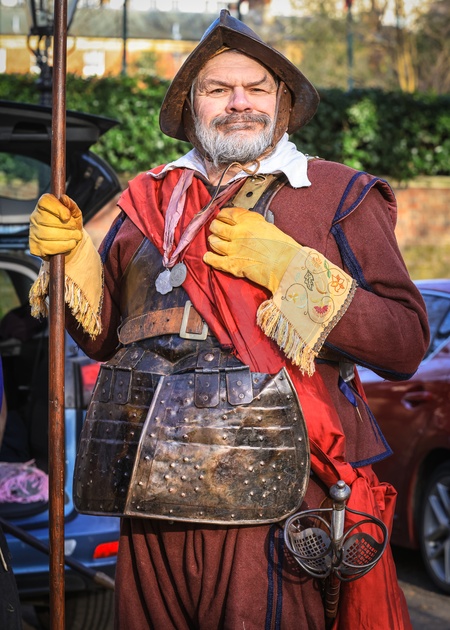 London, UK 28th Jan 2024. Volunteers assemble and get ready to march. Every Year, the English Civil War Society's volunteers with The Kings Army, march along the Mall in central London and to Horse Guards Parade, in Commemoration of Charles I, who was martyred 30th January 1649. Each regiment in the re-enactment consists of officers, muskets, followed by the colour, drummers, pikemen and baggage (women and children). The procession is led by the Lord General of the Kings Army, and the horsemen., Credit:Imageplotter / Avalon