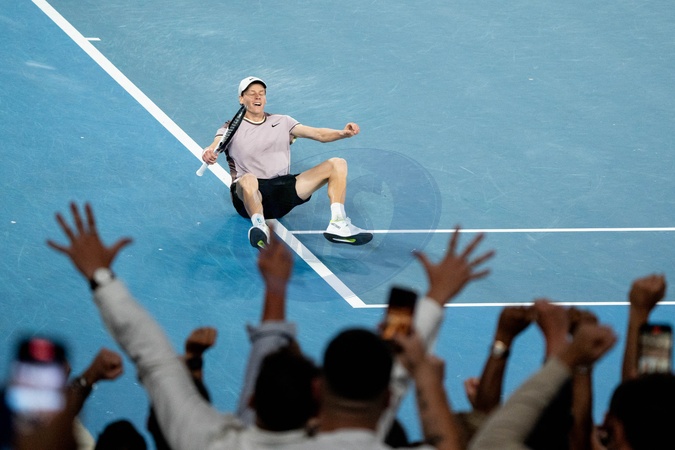 Jannik Sinner (ITA) - J.Sinner remporte la finale de l'Open d'Australie en battant D.Medvedev (3-6, 3-6, 6-4, 6-4, 6-3) à Melbourne, le 28 janvier 2024. © Virginie Bouyer / Panoramic / Bestimage J.Sinner wins the final of the Australian Open by beating D.Medvedev (3-6, 3-6, 6-4, 6-4, 6-3) in Melbourne, January 28, 2024