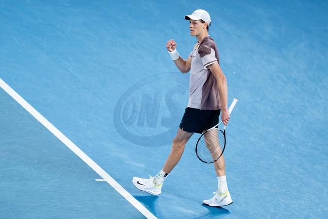 Jannik Sinner (ITA) - J.Sinner remporte la finale de l'Open d'Australie en battant D.Medvedev (3-6, 3-6, 6-4, 6-4, 6-3) à Melbourne, le 28 janvier 2024. © Virginie Bouyer / Panoramic / Bestimage J.Sinner wins the final of the Australian Open by beating D.Medvedev (3-6, 3-6, 6-4, 6-4, 6-3) in Melbourne, January 28, 2024