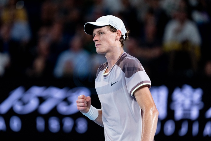 Jannik Sinner (ITA) - J.Sinner remporte la finale de l'Open d'Australie en battant D.Medvedev (3-6, 3-6, 6-4, 6-4, 6-3) à Melbourne, le 28 janvier 2024. © Virginie Bouyer / Panoramic / Bestimage J.Sinner wins the final of the Australian Open by beating D.Medvedev (3-6, 3-6, 6-4, 6-4, 6-3) in Melbourne, January 28, 2024