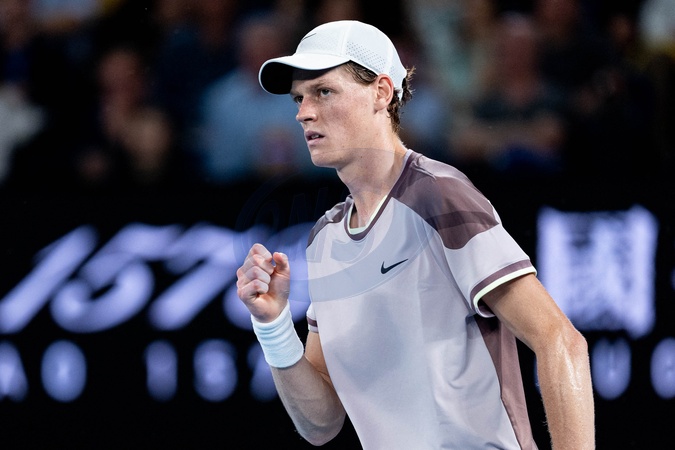 Jannik Sinner (ITA) - J.Sinner remporte la finale de l'Open d'Australie en battant D.Medvedev (3-6, 3-6, 6-4, 6-4, 6-3) à Melbourne, le 28 janvier 2024. © Virginie Bouyer / Panoramic / Bestimage J.Sinner wins the final of the Australian Open by beating D.Medvedev (3-6, 3-6, 6-4, 6-4, 6-3) in Melbourne, January 28, 2024