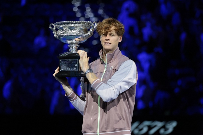 Jannik Sinner - J.Sinner remporte la finale de l'Open d'Australie en battant Daniil Medvedev (3-6, 3-6, 6-4, 6-4, 6-3) à Melbourne, le 28 janvier 2024. © Panoramic / Bestimage J.Sinner wins the final of the Australian Open by beating D.Medvedev (3-6, 3-6, 6-4, 6-4, 6-3) in Melbourne, January 28, 2024