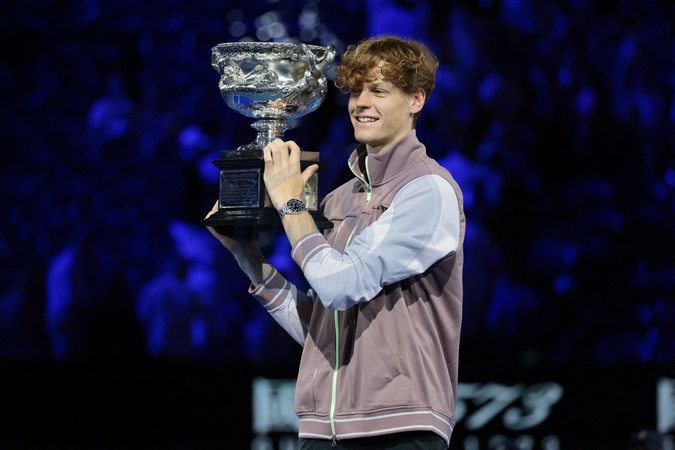Jannik Sinner - J.Sinner remporte la finale de l'Open d'Australie en battant Daniil Medvedev (3-6, 3-6, 6-4, 6-4, 6-3) à Melbourne, le 28 janvier 2024. © Panoramic / Bestimage J.Sinner wins the final of the Australian Open by beating D.Medvedev (3-6, 3-6, 6-4, 6-4, 6-3) in Melbourne, January 28, 2024