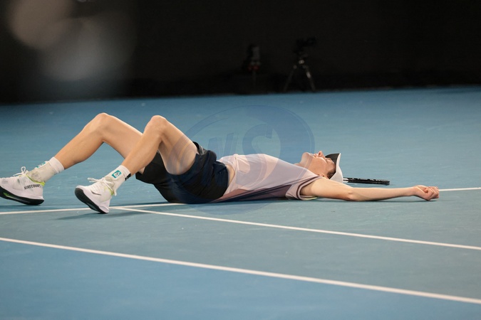 Jannik Sinner - J.Sinner remporte la finale de l'Open d'Australie en battant Daniil Medvedev (3-6, 3-6, 6-4, 6-4, 6-3) à Melbourne, le 28 janvier 2024. © Panoramic / Bestimage J.Sinner wins the final of the Australian Open by beating D.Medvedev (3-6, 3-6, 6-4, 6-4, 6-3) in Melbourne, January 28, 2024