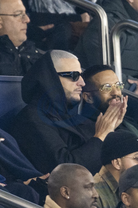 Malik Bentalha et Dj Snake - Celébrités dans les tribunes du match de Ligue 1 Uber Eats "PSG-Brest" (2-2) au Parc des Princes à Paris le 28 janvier 2024. © Cyril Moreau/Bestimage Celebrities in the stands of the Ligue 1 Uber Eats match "PSG-Brest" (2-2) at the Parc des Princes in Paris on January 28, 2024.