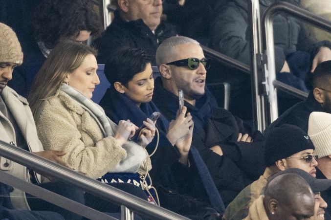 Celébrités dans les tribunes du match de Ligue 1 Uber Eats "PSG-Brest" (2-2) au Parc des Princes à Paris