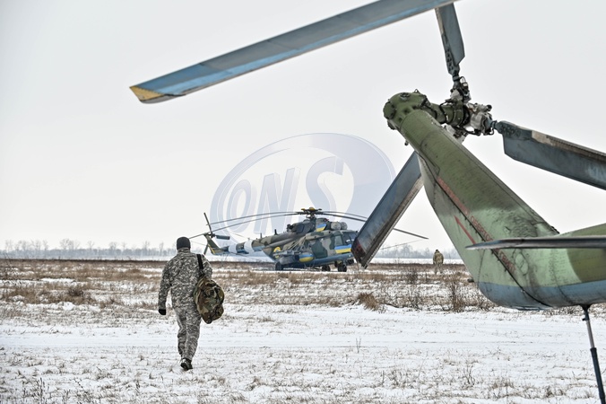 UKRAINE - JANUARY 24, 2024 - A serviceman of the 11th separate army aviation brigade "Kherson" of the Armed Forces of Ukraine approaches a helicopter, Ukraine., Credit:Dmytro Smolienko / Avalon