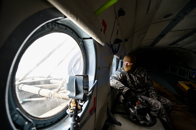 UKRAINE - JANUARY 24, 2024 - A serviceman of the 11th separate army aviation brigade "Kherson" of the Armed Forces of Ukraine looks through the helicopter window, Ukraine., Credit:Dmytro Smolienko / Avalon