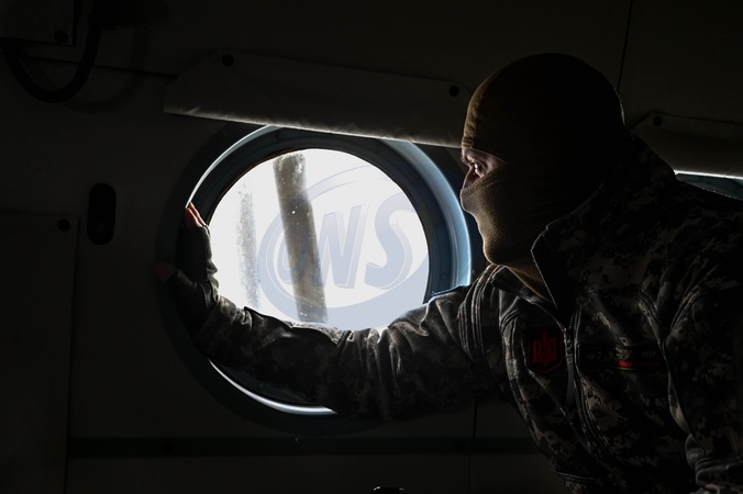 UKRAINE - JANUARY 24, 2024 - A serviceman of the 11th separate army aviation brigade "Kherson" of the Armed Forces of Ukraine looks through the helicopter window, Ukraine., Credit:Dmytro Smolienko / Avalon