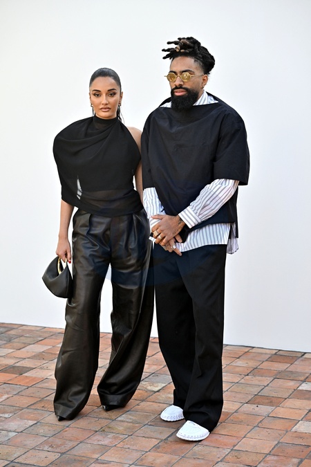 Amina Muaddi et son compagnon Fary au défilé de mode "Les Sculptures" Jacquemus à la Fondation Maeght à Saint-Paul-De-Vence, France, le 29 janvier 2024. © Bruno Bebert/Bestimage Celebs attend the "Les Sculptures" Jacquemus' Fashion Show at Fondation Maeght in Saint-Paul-De-Vence, France, on January 29, 2024.