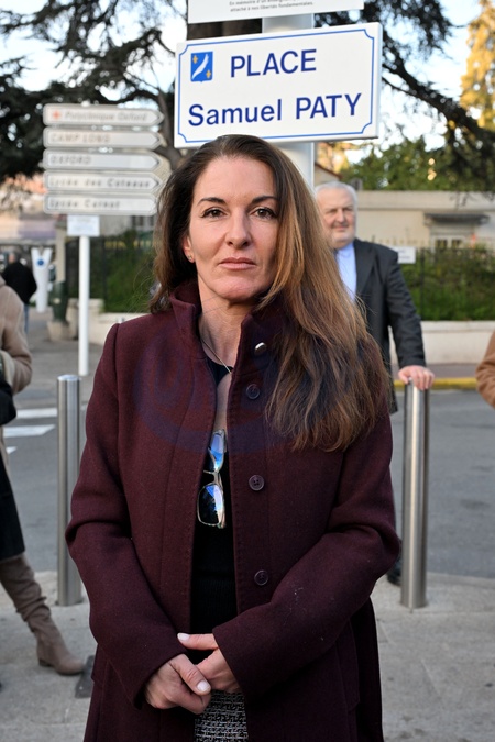 David Lisnard, le maire de Cannes) et Mickaëlle Paty ont inauguré la «Place Samuel Paty» située devant le lycée Carnot à Cannes, 29 janvier 2024. À cette occasion, une plaque commémorative a été dévoilée pour entretenir la mémoire de Samuel, défendre les valeurs de la République française et lutter contre l'islamisme et le fanatisme religieux quel qu'il soit. Samuel Paty, professeur d'histoire-géographie, est assassiné par arme blanche et décapité peu après être sorti de son collège de Conflans-Sainte-Honorine. L'assassin, Abdoullakh Anzorov, est un citoyen russe d'origine tchétchène âgé de 18 ans et qui bénéficie du statut de réfugié, accordé à ses parents alors qu'il était mineur. Il est abattu par la police quelques minutes après l'attentat. © Bruno Bebert / Bestimage David Lisnard, Mayor of Cannes) and Mickaëlle Paty inaugurated the "Place Samuel Paty" in front of the Lycée Carnot in Cannes on 29 January 2024. On this occasion, a commemorative plaque was unveiled to keep Samuel's memory alive, defend the values of the French Republic and fight against Islamism and religious fanaticism of any kind. Samuel Paty, a history and geography teacher, was stabbed to death and decapitated shortly after leaving his school in Conflans-Sainte-Honorine. The murderer, Abdoullakh Anzorov, was an 18-year-old Russian citizen of Chechen origin who had been granted refugee status by his parents when he was a minor. He was shot dead by the police a few minutes after the attack.