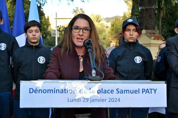 Mickaëlle Paty, siostra Samuela Paty’ego, wraz z burmistrzem Davidem Lisnardem nadaje nazwę Place Samuel Paty w Cannes