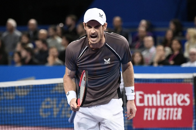 MONTPELLIER, FRANCE - JANUARY 29 : Andy MURRAY (GBR) celebration during the 1st round of the ATP 250 Open Sud de France tournament against Benoit PAIRE (FRA) in Montpellier, France on January 29th, 2024