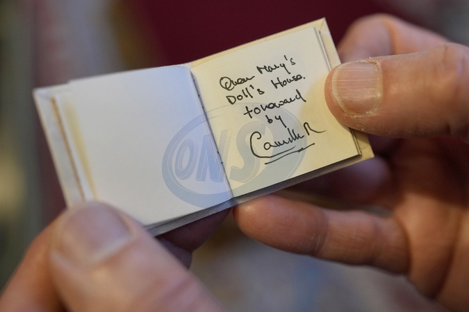 Glenn Bartley, head of the Royal Bindery, shows a miniature book, written by Britain's Queen Camilla, during a reception at Windsor Castle for authors, illustrators and binders who have been involved in the new Miniature Library collection displayed alongside Queen Mary's Dolls' House for visitors to enjoy throughout 2024 in celebration of its centenary year in Windsor, England, Tuesday, Jan. 30, 2024, Credit:Kirsty Wigglesworth / Avalon