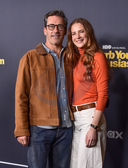 Jon Hamm and Anna Osceola arriving to HBO's ‘Curb Your Enthusiasm' Finale Season Premiere at Directors Guild of America Theatre on January 30, 2024 in West Hollywood