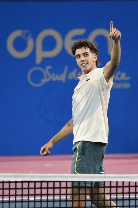 MONTPELLIER, FRANCE - JANUARY 30 : Arthur CAZAUX (FRA) wins the 1st round of the ATP 250 Open Sud de France tournament vs. Maximilian MARTERER (GBR) in Montpellier, France on January 30th, 2024.