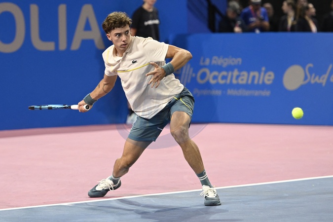 MONTPELLIER, FRANCE - JANUARY 30 : Arthur CAZAUX (FRA) during the 1st round of the ATP 250 Open Sud de France tournament vs. Maximilian MARTERER (GBR) in Montpellier, France on January 30th, 2024.