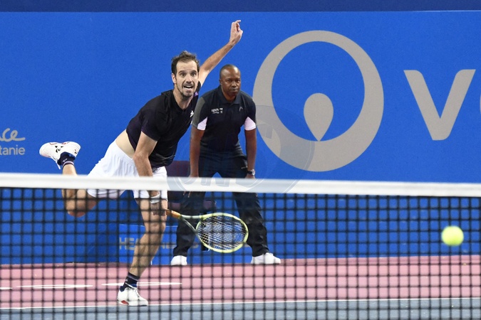 MONTPELLIER, FRANCE - JANUARY 30 : Richard GASQUET (FRA) during the 1st round of the ATP 250 Open Sud de France tournament vs. Pablo LLAMAS RUIZ (ESP) in Montpellier, France on January 30th, 2024.