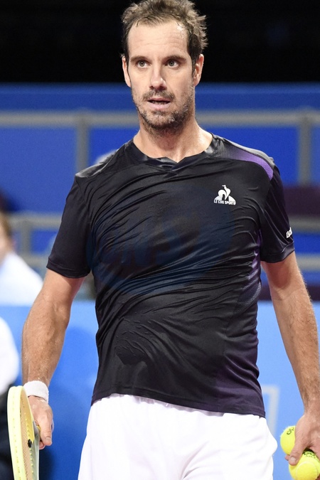 MONTPELLIER, FRANCE - JANUARY 30 : Richard GASQUET (FRA) during the 1st round of the ATP 250 Open Sud de France tournament vs. Pablo LLAMAS RUIZ (ESP) in Montpellier, France on January 30th, 2024.