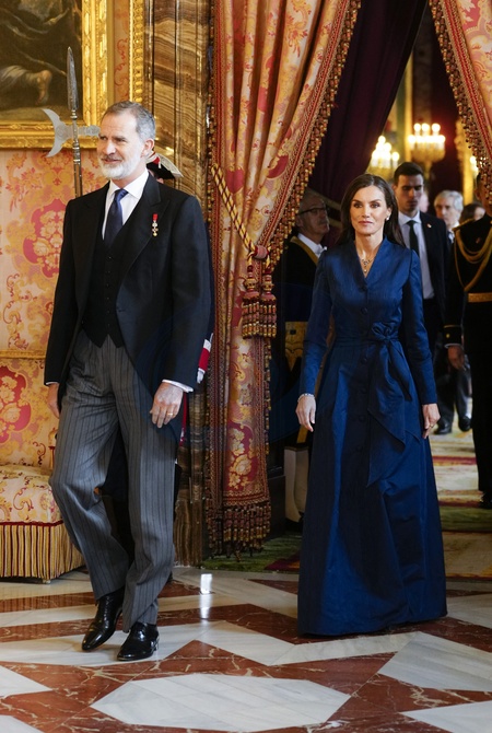 Król Hiszpanii Filip VI i królowa Letycja podczas corocznego przyjęcia z ambasadorami w Pałacu Królewskim w Madrycie”
