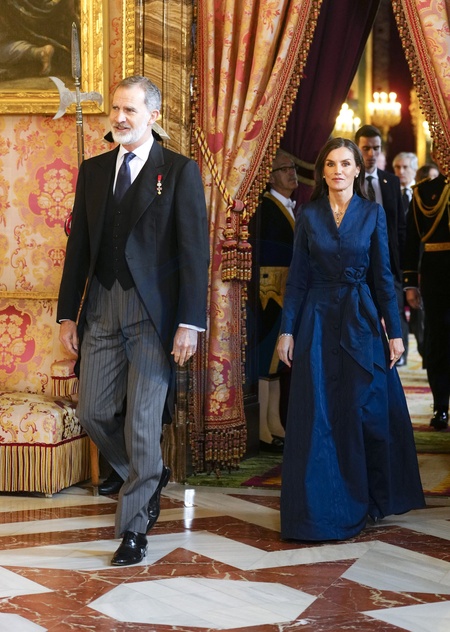 Le roi Felipe VI et la reine Letizia d'Espagne lors de la réception annuelle avec les ambassadeurs au palais royal à Madrid