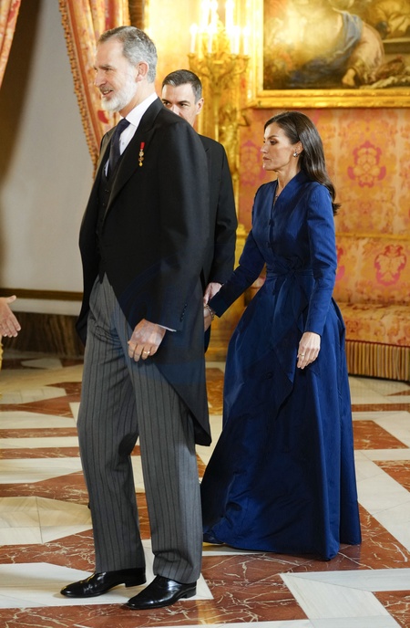 Król Hiszpanii Filip VI i królowa Letycja podczas corocznego przyjęcia z ambasadorami w Pałacu Królewskim w Madrycie”