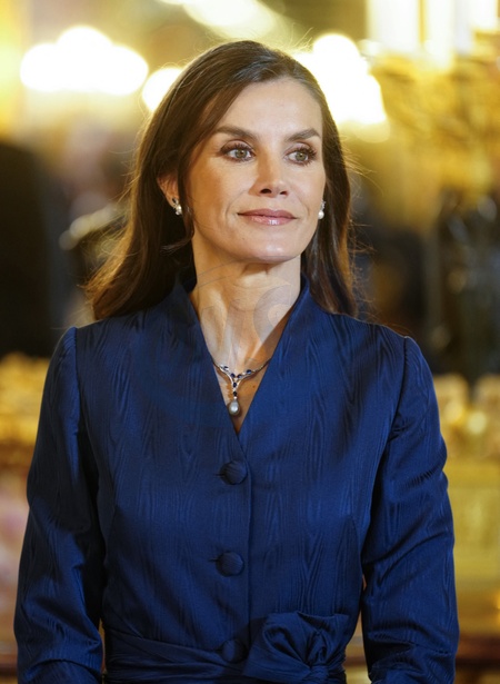 La reine Letizia d'Espagne lors de la réception annuelle avec les ambassadeurs au palais royal à Madrid. Le 31 janvier 2024 King Felipe VI and Queen Letizia host the annual Foreign Ambassadors reception at the Royals Palace. Madrid - January 31, 2024
